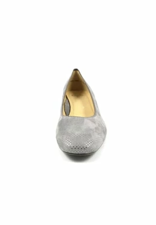 Flotter Pumps von Ara aus einem feinen hochwertigem Nubukleder. Innen ist der Schuh mit einem cromfrei gegerbtem Leder ausgestattet. Der Schuh hat eine normale Weite. Der Trotteurabsatz hat eine Höhe von cirka 3 cm. Die Laufsohle ist aus Gummi. Die Schuhgröße fällt regulär aus.