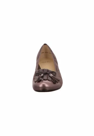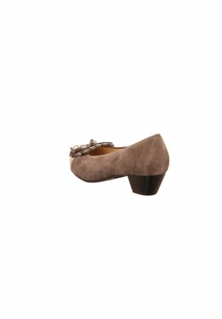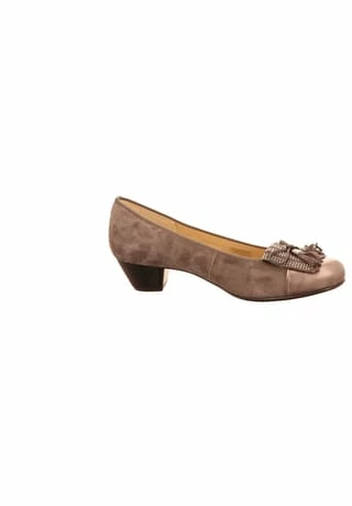 Flotter Pumps von Ara aus einem feinen hochwertigem Veloursleder. Innen ist der Schuh mit einem cromfrei gegerbtem Leder ausgestattet. Der Schuh hat eine normale Weite. Der stabile Blockabsatz hat eine Höhe von cirka 3 cm. Die Laufsohle ist aus Gummi. Die Schuhgröße fällt regulär aus.