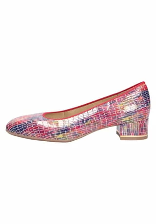 Flotter Pumps von Ara aus einem feinen hochwertigem geprägten Glattleder. Innen ist der Schuh mit einem cromfrei gegerbtem Leder ausgestattet. Der Schuh hat eine normale Weite. Der stabile Blockabsatz hat eine Höhe von cirka 4 cm. Die Laufsohle ist aus Gummi. Die Schuhgröße fällt regulär aus.