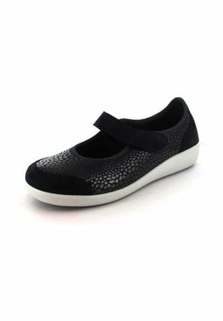 Schöne Ballerinas von Florett aus einem feinen hochwertigem geprägten Glattleder. Der Schuh hat eine normale Weite. Der Absatz ist durchgehend flach. Die Laufsohle ist aus Gummi. Der Klettverschluss zum einfachen und bequemen an- und ausziehen sorgt für einen guten Halt.Ebenfalls ist eine stufenlose Anpassung an den Fuß möglich. Die Schuhgröße fällt regulär aus.