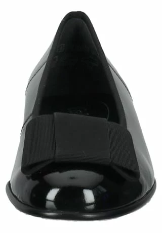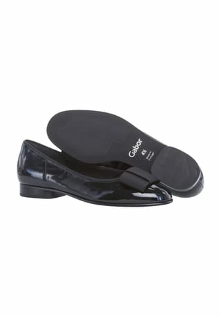 Geschmackvoll und bequem so präsentiert sich dieser tolle Ballerina von Gabor. Hergestellt aus Lackleder und Textil sind die Damenschuhe optisch besonders ansprechend und vielfältig einsetzbar. Um müden Füßen vorzubeugen, besteht die Innenausstattung aus Textil. So ist rund um die Uhr für ein angenehmes Tragegefühl gesorgt. Nochmals erhöht wird der Tragekomfort durch die Decksohle aus Leder, die mit ihrem atmungsaktiven Material für ein optimales Klima im Inneren sorgt. Eine angebrachte Schleife macht die femininen Schuhe zu einem echten Hingucker und rundet das Gesamtbild gekonnt ab. Die strapazierfähige Laufsohle aus Synthetik sorgt für ein gutes Gefühl beim Laufen, während Frauen mit dem modischen Blockabsatz ihre Beine wunderbar betonen können. Für einen cleanen Look kann der Schlüpfschuh einfach mit einer Skinny-Jeans und einem leichten Pullover kombiniert werden. Die Kombination aus Design und Komfort macht den Ballerina von Gabor zu einem unverzichtbaren Begleiter, den man schnell nicht mehr missen möchte.