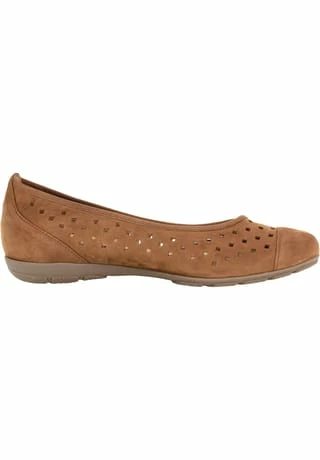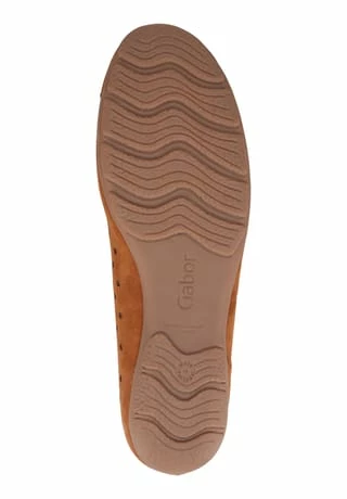 Schöne Ballerinas von Gabor aus einem feinen hochwertigem Nubukleder. Der Schuh hat eine normale Weite. Der Absatz ist durchgehend flach. Die Laufsohle ist aus Gummi. Die Schuhgröße fällt regulär aus.
