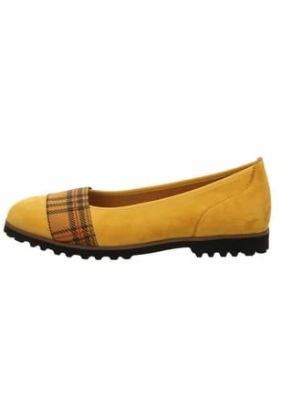 Schöne Ballerinas von Gabor aus einem feinen hochwertigem Kunstleder. Der Schuh hat eine normale Weite. Der Absatz ist durchgehend flach. Die weiche PU-Sohle schont die Gelenke und federt jeden Ihrer Tritte optimal ab. Die Schuhgröße fällt regulär aus.