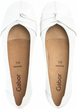 Schöne Ballerinas von Gabor aus einem feinen hochwertigem Glattleder. Innen ist der Schuh mit einem cromfrei gegerbtem Leder ausgestattet. Der Schuh hat eine normale Weite. Der Absatz hat eine Höhe von cirka 1 cm. Die Laufsohle ist aus Gummi. Die Schuhgröße fällt regulär aus.