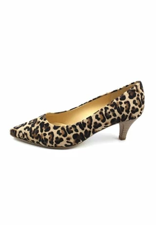 Flotter Pumps von Gabor aus einem feinen hochwertigem Nubukleder. Innen ist der Schuh mit einem cromfrei gegerbtem Leder ausgestattet. Der Schuh hat eine normale Weite. Der Stilettoabsatz hat eine Höhe von cirka 2 cm. Die weiche PU-Sohle schont die Gelenke und federt jeden Ihrer Tritte optimal ab. Die Schuhgröße fällt regulär aus.