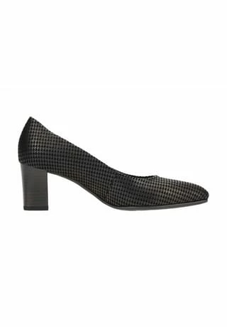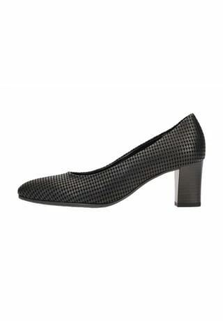 Flotter Pumps von Gabor aus angenehm weichem und hochertigem Leder. Innen ist der Schuh mit einem cromfrei gegerbtem Leder ausgestattet. Der Schuh hat eine normale Weite. Der Trichterabsatz hat eine Höhe von cirka 6 cm. Die Laufsohle ist aus Gummi. Die Schuhgröße fällt regulär aus.