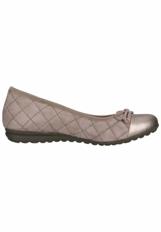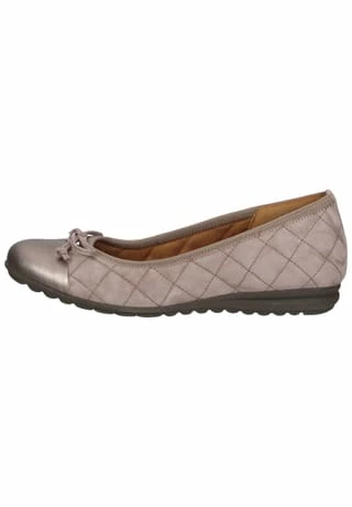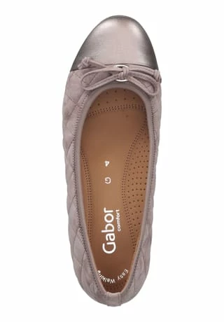 Zu diesem Schuh kann man einfach nicht nein sagen. Der klassische Ballerina von Gabor aus einem Mix aus Veloursleder und Textil wird mit einer schönen Zierschleife und einer Vorderkappe in Lackoptik zum edlen Must-Have. Die gesteppte Optik lockert das Design gekonnt auf. Mit der Comfort Lederdecksohle ausgestattet und in der Weite-G machst du mit diesem Schuh nichts verkehrt.