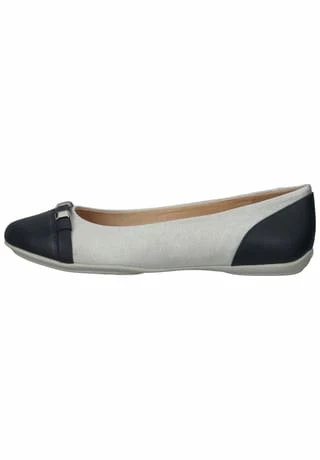 Klassischer und zeitloser Ballerina der Marke Geox. Die verstärkte Zehen- und Fersenkappe überzeugt nicht nur optisch, sie bietet auch einen optimalen Halt und schützt vor Stößen. Die Gummisohle ist perforiert und mit einer Spezialmembran mit Mikroporen ausgestattet. Diese ermöglicht eine natürliche Transpiration und verhindert, dass Wasser eindringt.