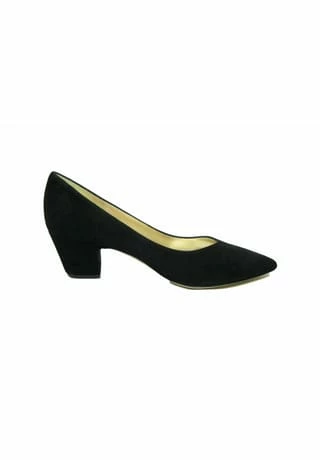 Flotter Pumps von Moda di Fausto aus einem feinen hochwertigem Veloursleder. Innen ist der Schuh mit einem cromfrei gegerbtem Leder ausgestattet. Der Schuh hat eine normale Weite. Der Trotteurabsatz hat eine Höhe von cirka 5 cm. Die Laufsohle ist aus Gummi. Die Schuhgröße fällt kleiner aus.