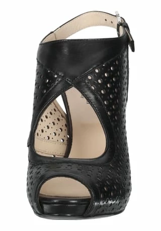 Nero Giardini überzeugt mit einer coolen High Heel Sandalette aus glänzendem Nappaleder. Die vielen Cut-Outs geben nicht nur ein überzeugendes Gesamtbild ab, sie lassen den Schuh auch an warmen Sommertagen perfekt tragen. Die offene Zehnkappe rundet den Schuh ab.