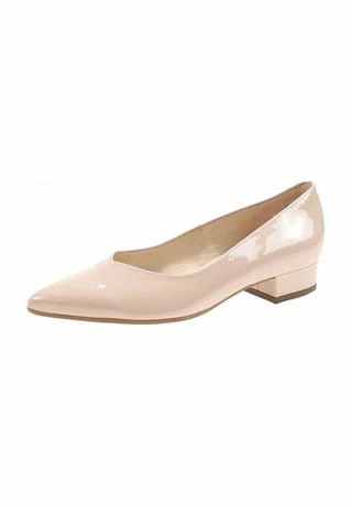 Flotter Pumps von Peter Kaiser aus einem hochwertigem Lackleder. Innen ist der Schuh mit einem cromfrei gegerbtem Leder ausgestattet. Der Schuh hat eine normale Weite. Der stabile Blockabsatz hat eine Höhe von cirka 2 cm. Die Laufsohle ist aus Krepp. Die Schuhgröße fällt regulär aus.