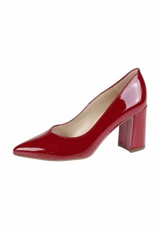 Flotter Pumps von Peter Kaiser aus einem hochwertigem Lackleder. Innen ist der Schuh mit einem cromfrei gegerbtem Leder ausgestattet. Der Schuh hat eine normale Weite. Der stabile Blockabsatz hat eine Höhe von cirka 8 cm. Die Laufsohle ist aus Gummi. Die Schuhgröße fällt regulär aus.