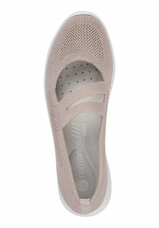 Bequemer Riemchenballerina von Remonte aus atmungsaktivem und elastischen Textil. Ein besonderer Blickfang ist die modische Knitoptik. Dank des Klettriemens ist ein schneller Einstieg sicher. Die angenehm weich gepolsterte Decksohle lässt sich bei Bedarf herausnehmen.