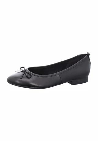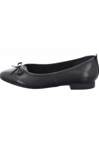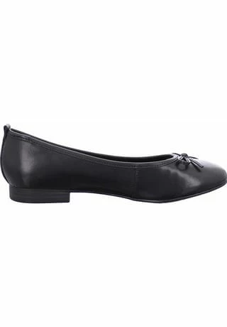 Schöne Ballerinas von Tamaris aus einem feinen hochwertigem Glattleder. Innen ist der Schuh mit Kunstleder augestattet. Der Schuh hat eine normale Weite. Der Absatz hat eine Höhe von cirka 2 cm. Die Laufsohle ist aus Krepp. Die Schuhgröße fällt regulär aus.