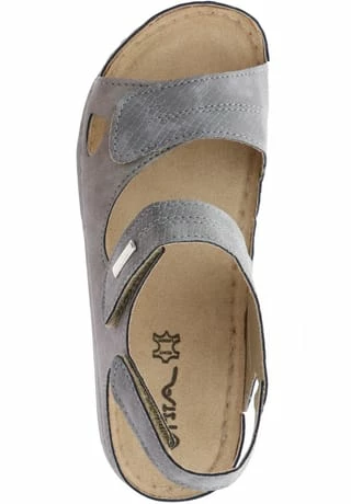 Der leichte Keilabsatz macht das Gehen und Stehen in diesen Schuhen zu einem angenehmen Erlebnis. Durch die am Spann und an der Verse angebrachten Klettverschlüsse kann die Sandalette perfekt an den Fuß angepasst werden.