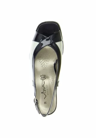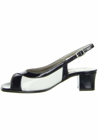 Moderner Slingpumps mit Peep-Toe und nicht zu hohem Blockabsatz. Die atmungsaktive Softlederdecksohle sorgt für ein angenehmes Tragegefühl. Durch die Schließe am Riemchen kann die Weite ideal angepasst werden.