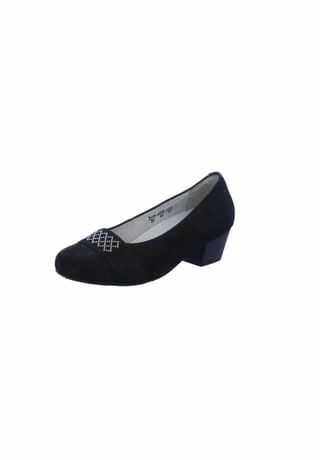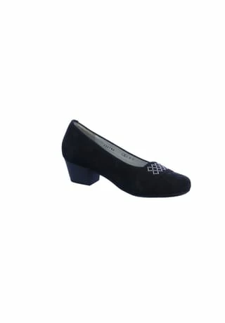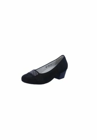 Flotter Pumps von Waldläufer aus einem feinen hochwertigem Nubukleder. Innen ist der Schuh mit einem cromfrei gegerbtem Leder ausgestattet. Der Schuh verfügt über eine etwas breitere Weite. Der Trichterabsatz hat eine Höhe von cirka 4 cm. Die Laufsohle ist aus Gummi. Die Schuhgröße fällt regulär aus.